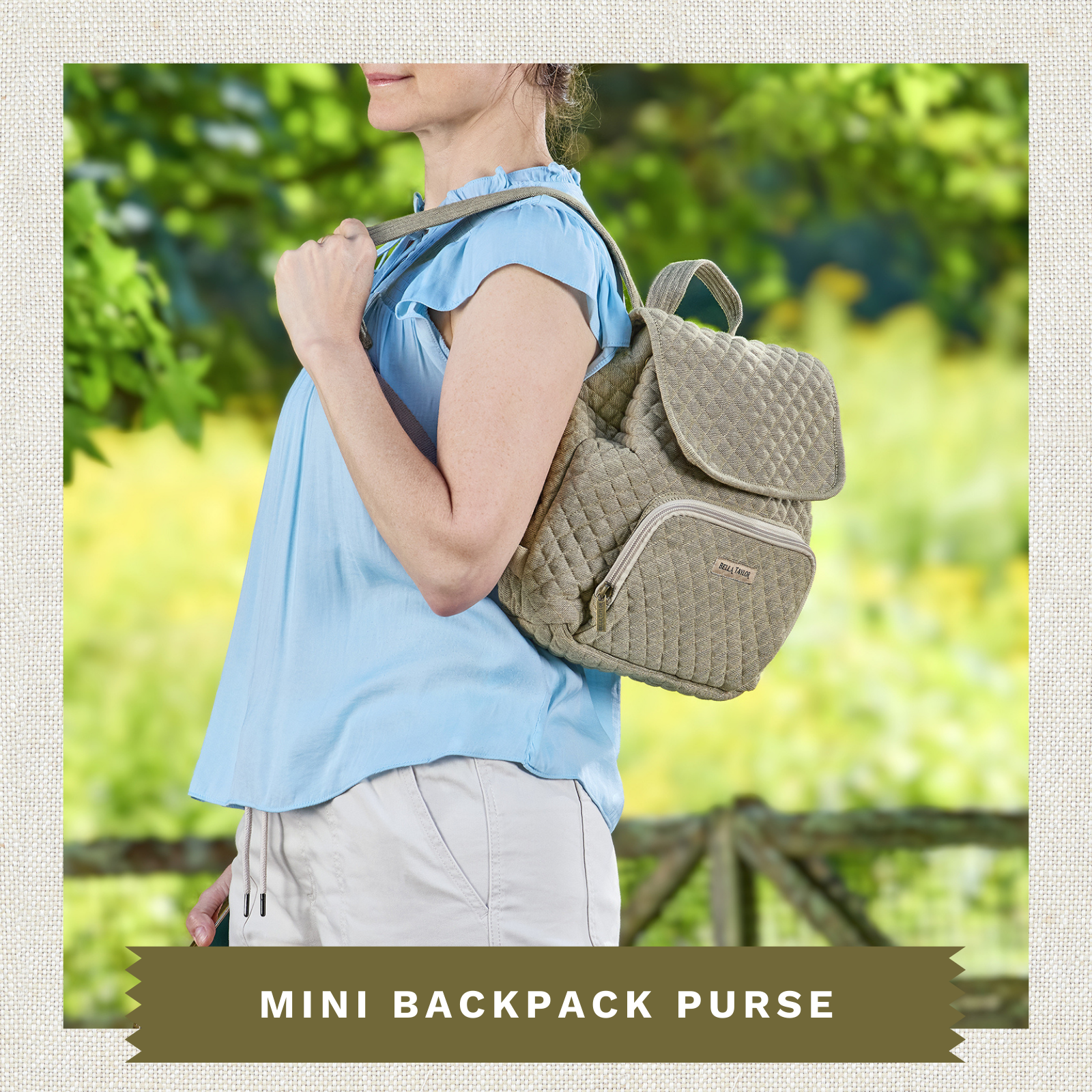 Khaki Chambray Mini Backpack