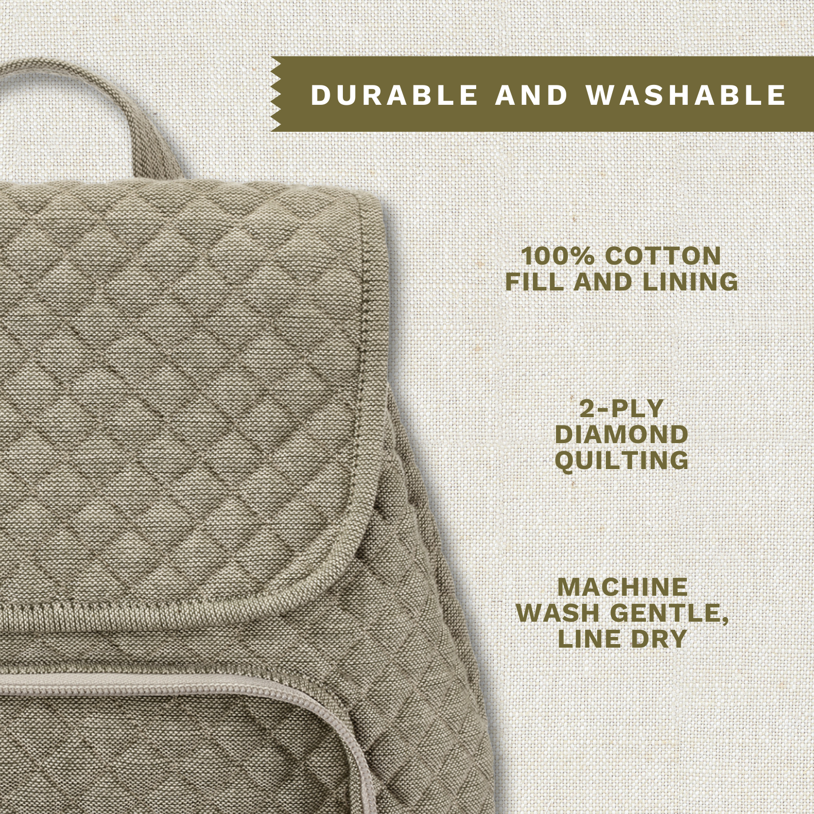 Quality Construction: Made to last with lightweight fabrics and diamond quilting; Easy to clean—machine washable on gentle cycle or spot clean then line dry
