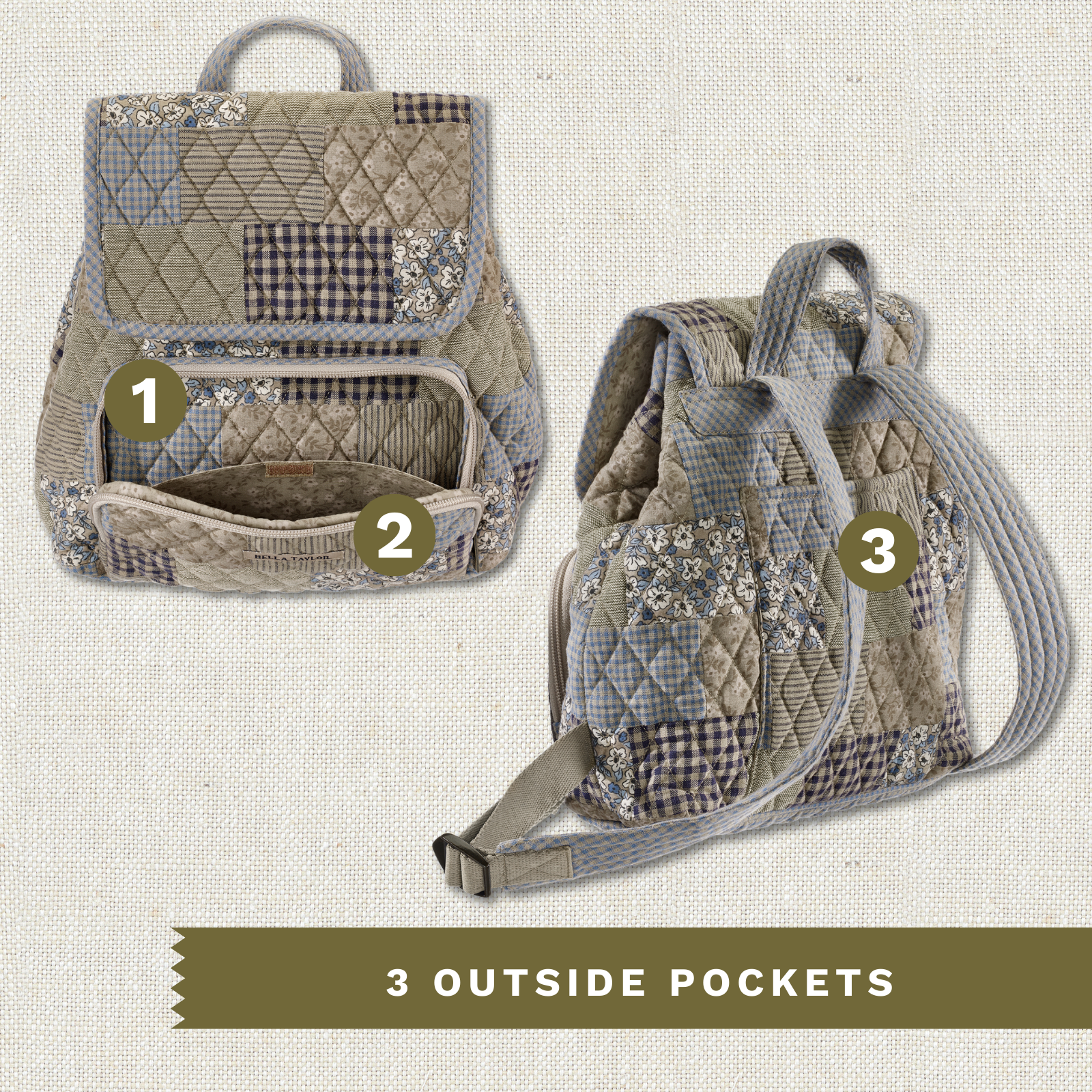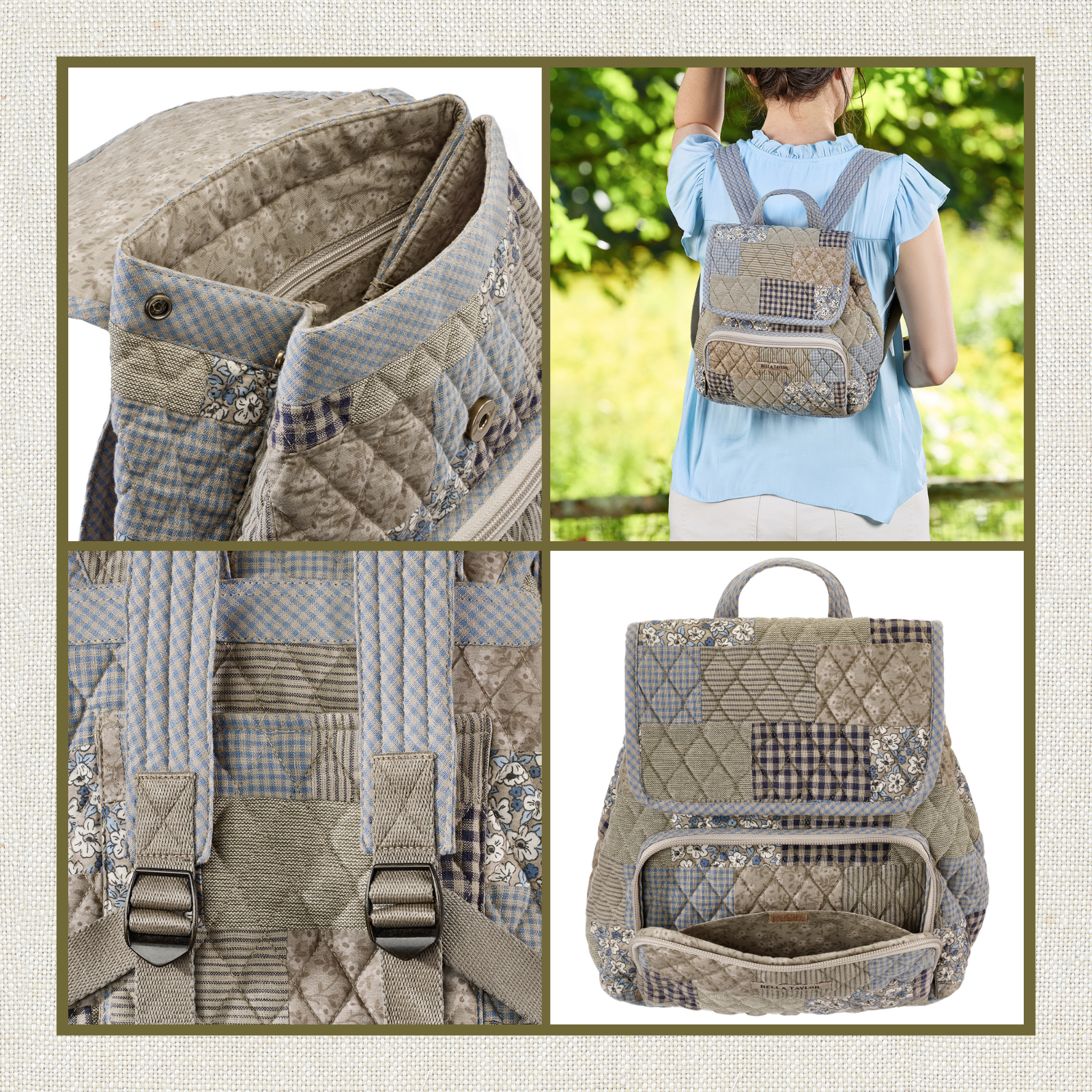 Khaki Patchwork Mini Backpack