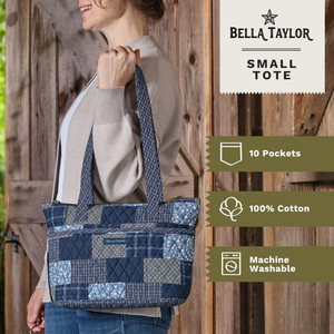 Each Bella Taylor patchwork style features authentic pieced patches in 100% cotton fabrics., durable metal hardware, and reinforced diamond quilting.